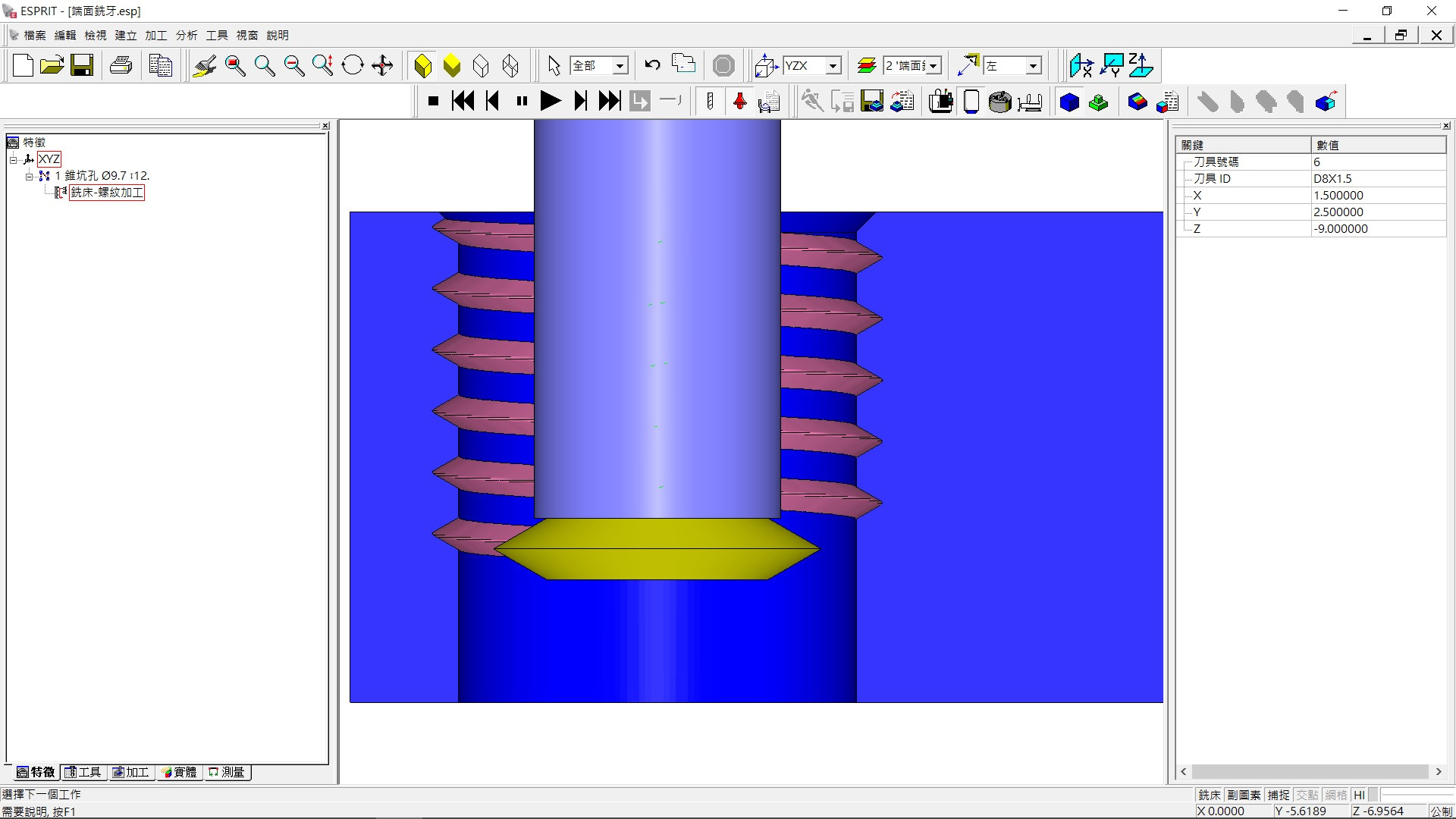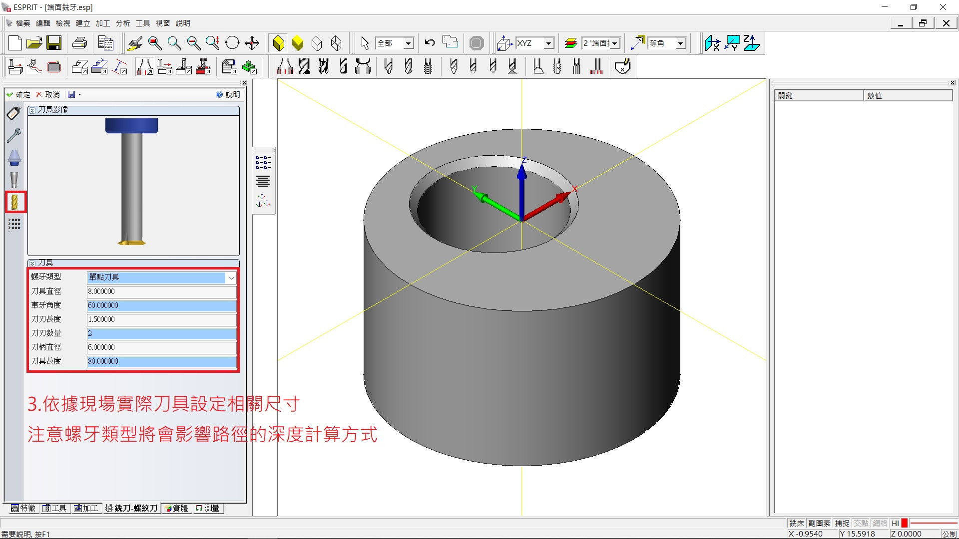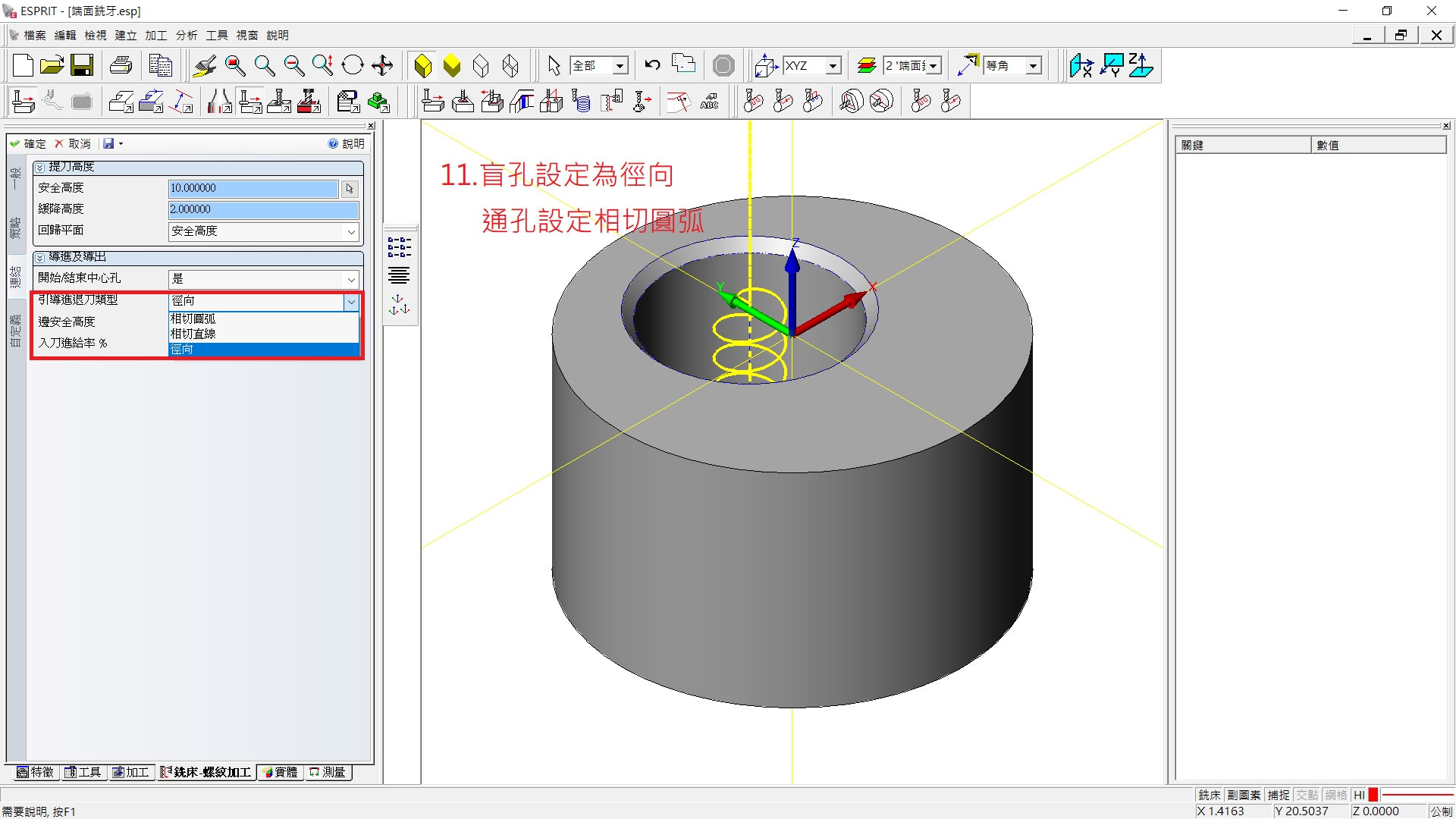 範例:下孔徑為 9.7,螺紋尺寸為M11XP1.5