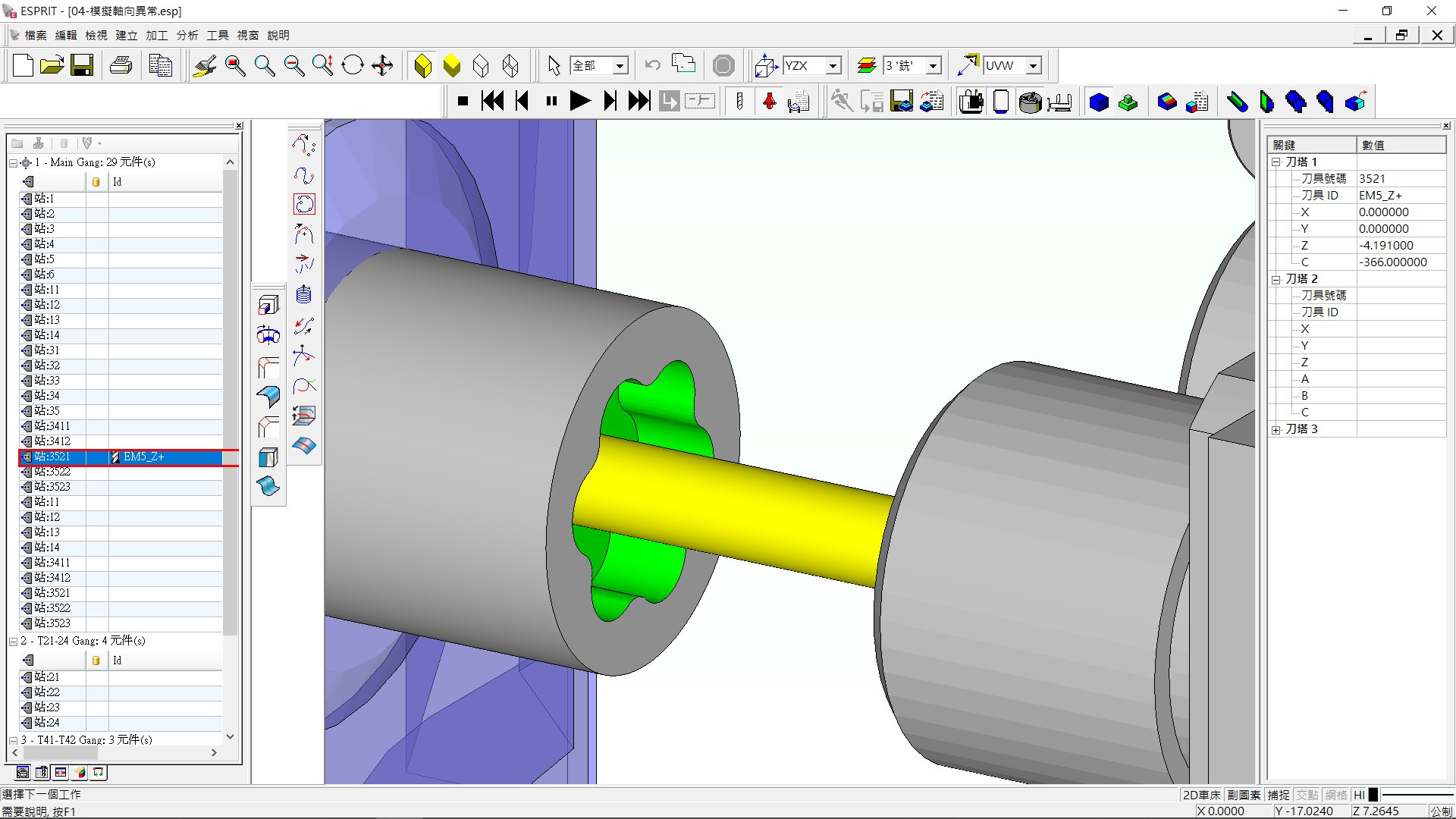 檢查該工法的刀具設定,刀具軸向是否設定合理