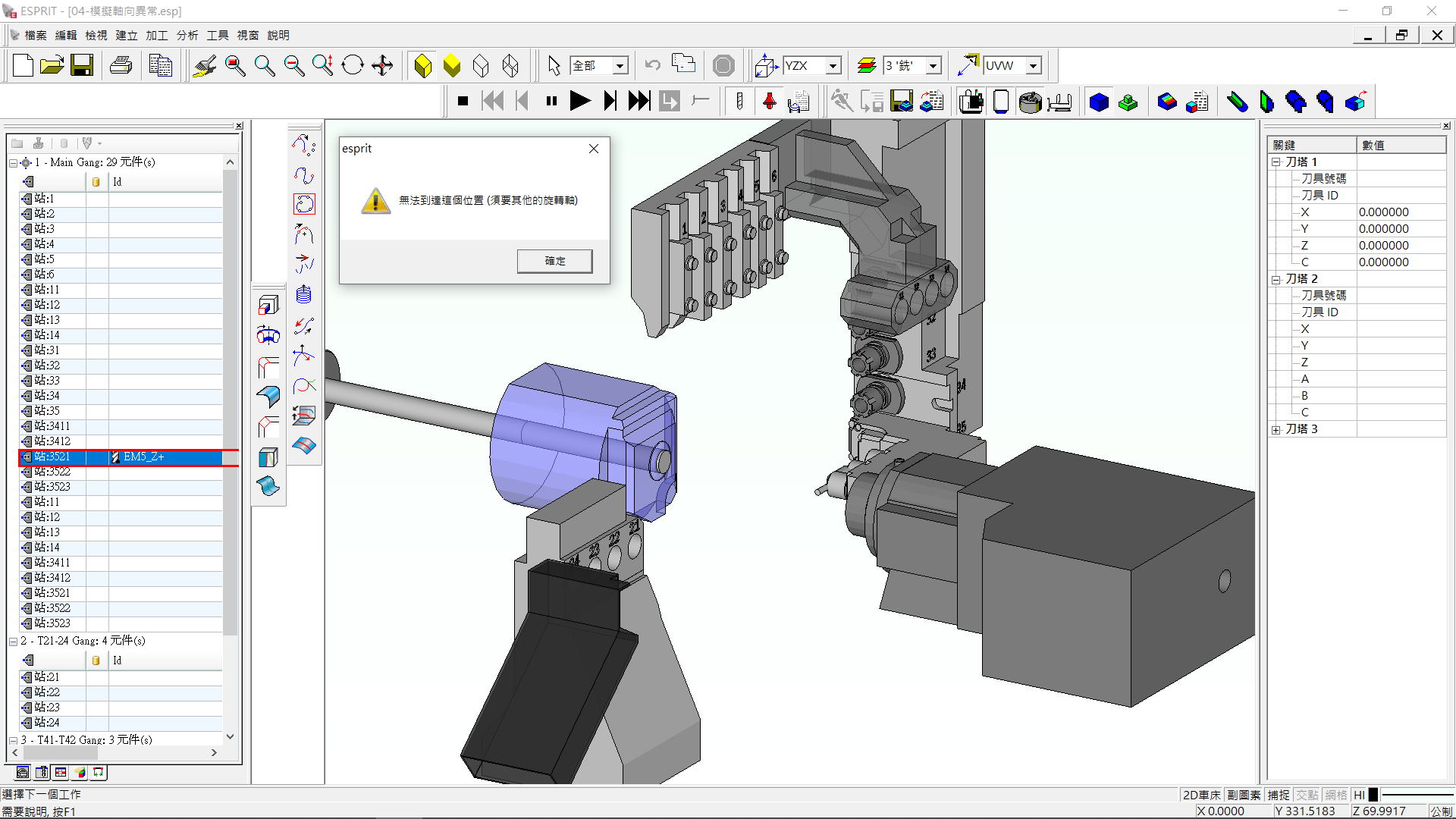 狀況:模擬時跳出錯誤訊息 - 無法到達這個位置?