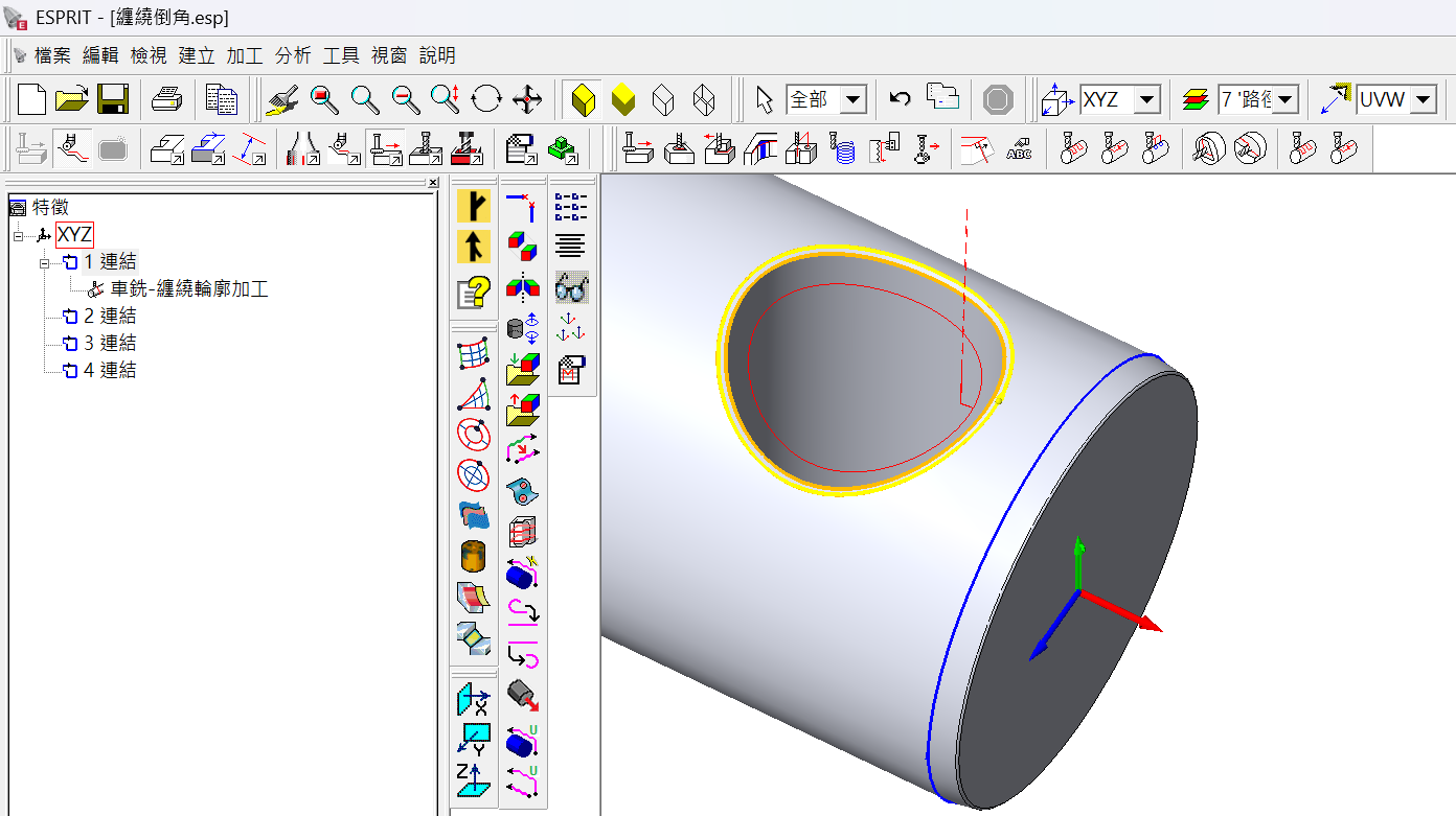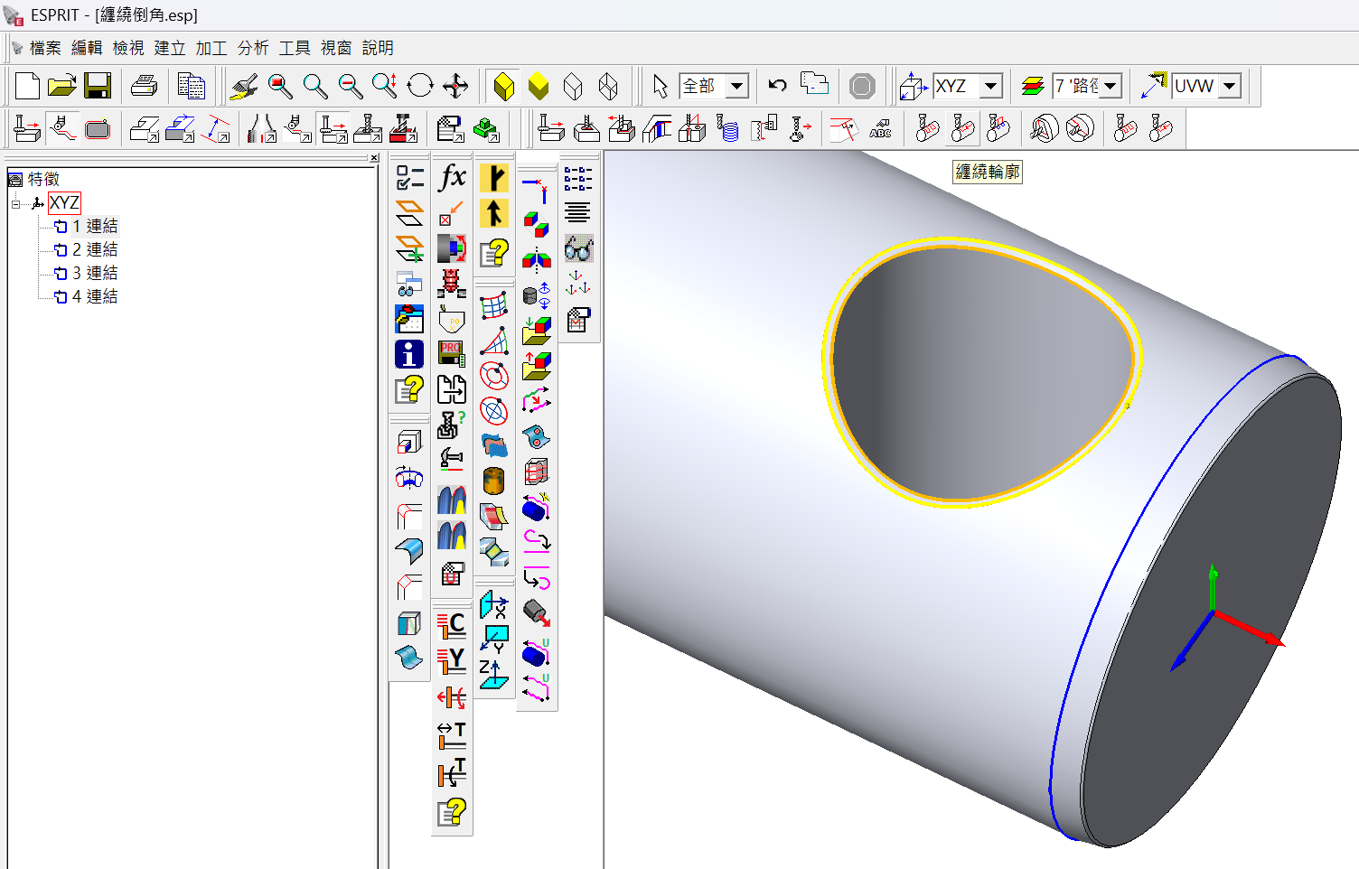 3.專案管理>特徵欄位>點擊完成後的特徵>點擊車銑複合>纏繞輪廓![]()